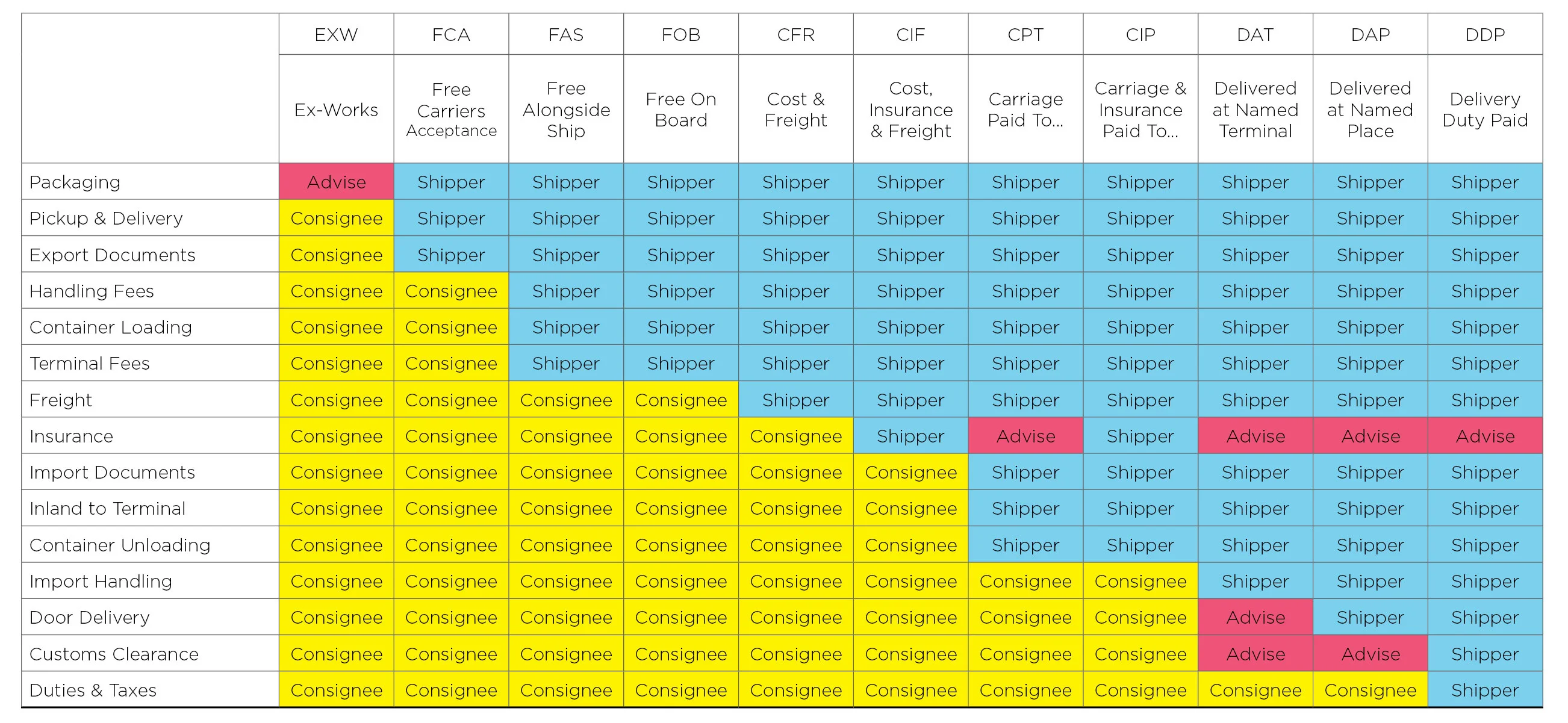 Incoterms comparison table
